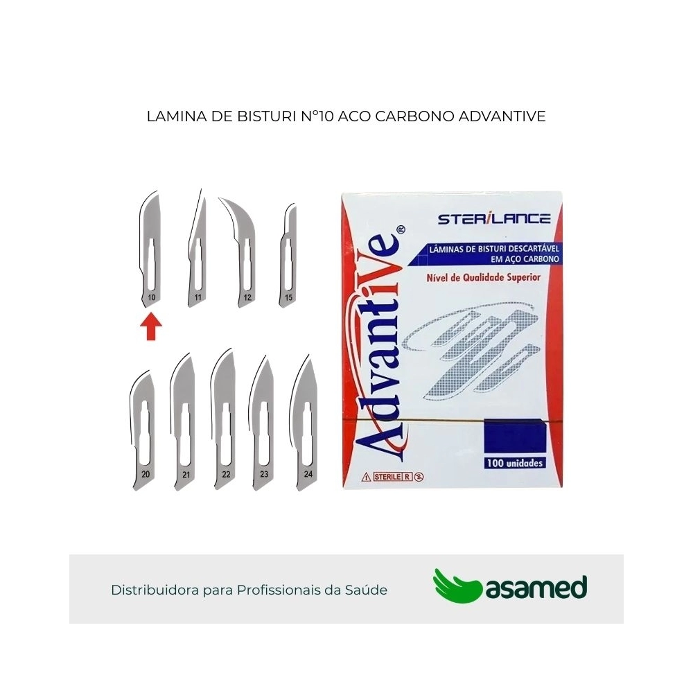 LÂMINA DE BISTURI DESCARTÁVEL DE AÇO INOX ADVANTIVE Nº 10