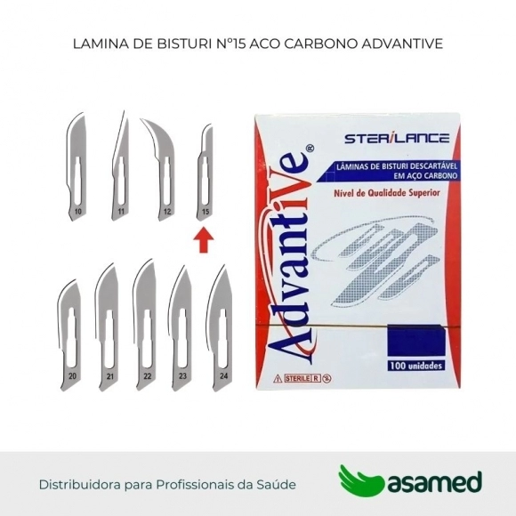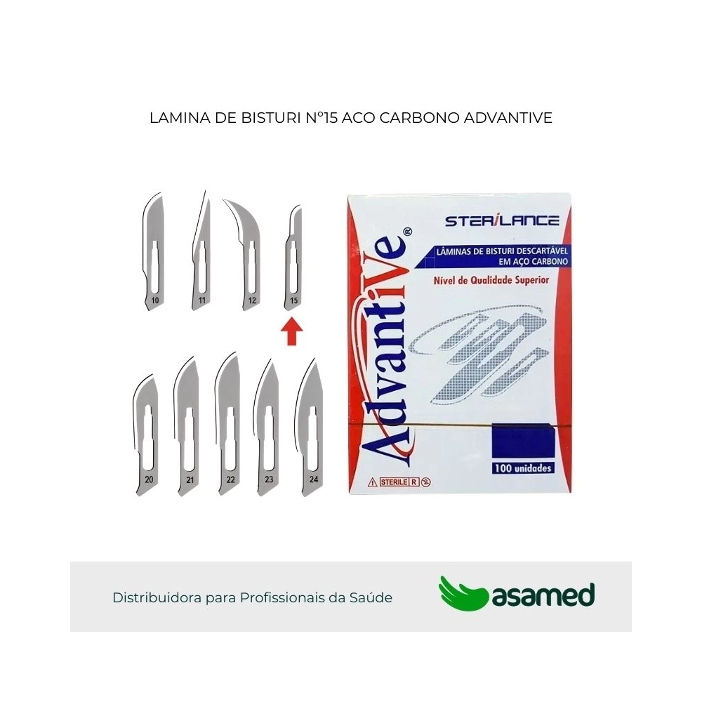 LÂMINA DE BISTURI DESCARTÁVEL DE AÇO INOX ADVANTIVE Nº 15