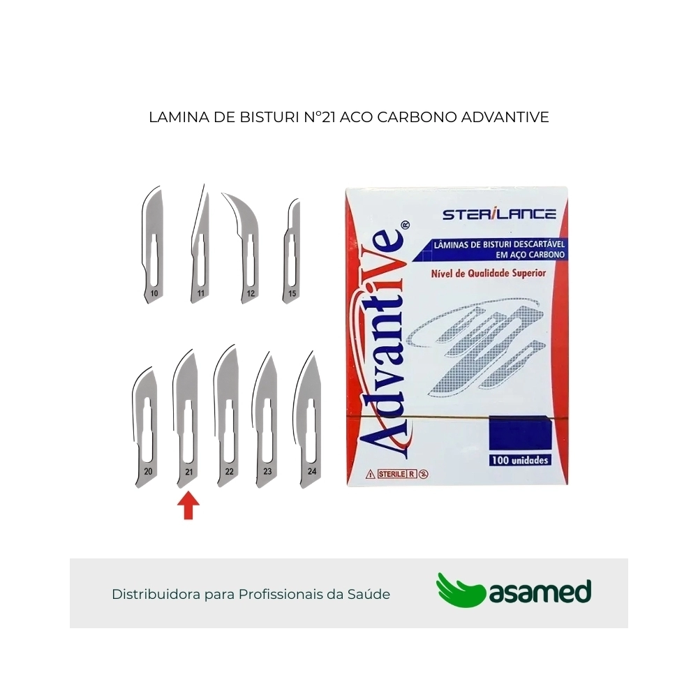 LÂMINA DE BISTURI DESCARTÁVEL DE AÇO INOX ADVANTIVE Nº 21