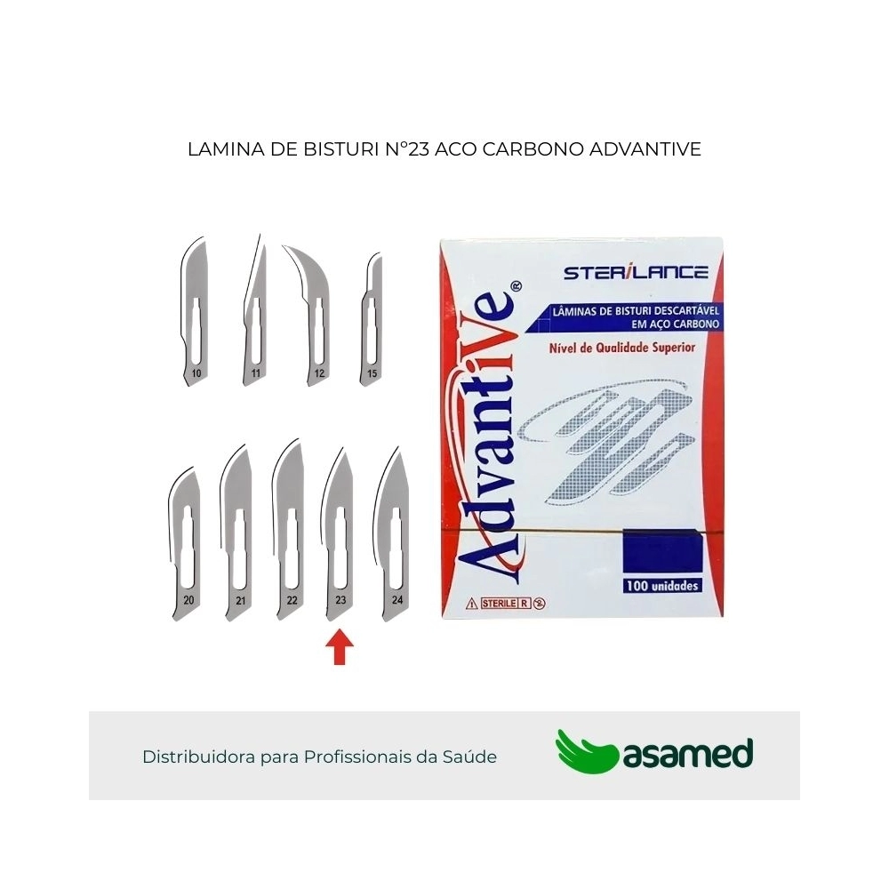 LÂMINA DE BISTURI DESCARTÁVEL DE AÇO INOX ADVANTIVE Nº 23