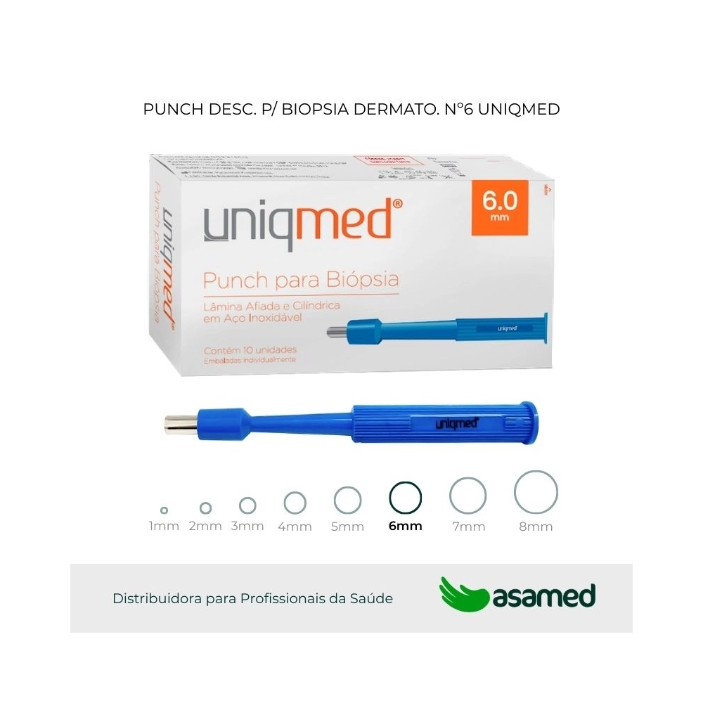 O Punch para Biopsia Uniqmed é constituído de uma lâmina em aço inoxidável, afiada e cilíndrica, acoplada a um cabo plástico