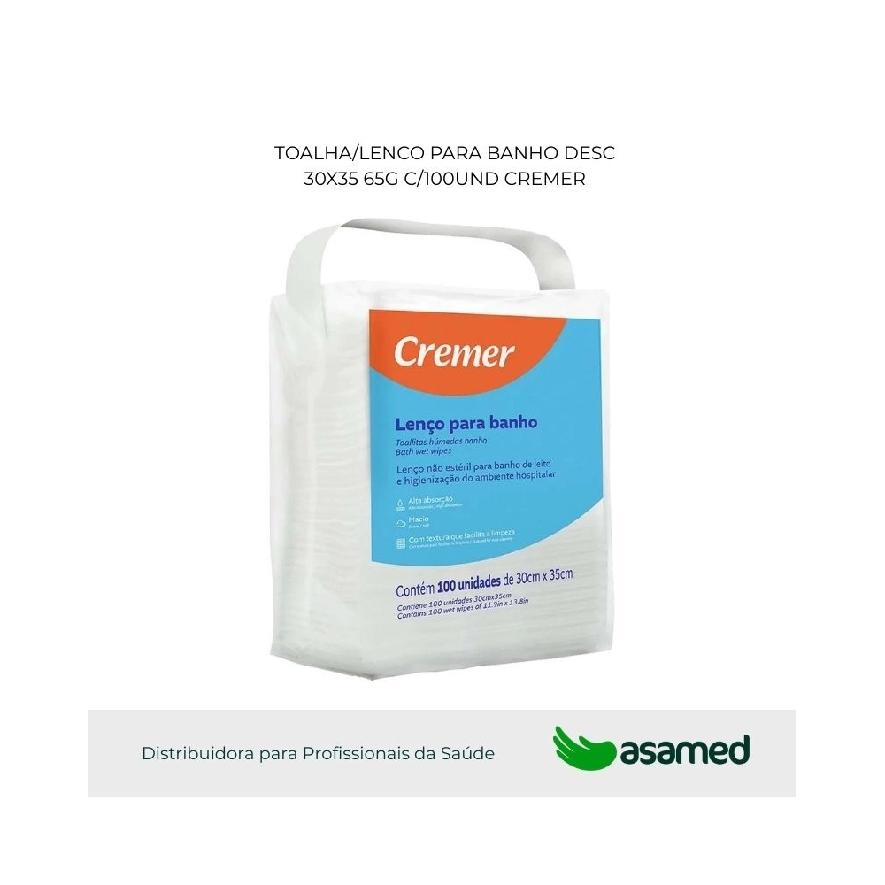 Lenço para banho Cremer é indicado para uso em secagem de instrumental, proteção de caixas cirúrgicas, preparação de kits, limpeza de ambientes, assepsia e banho de pacientes.